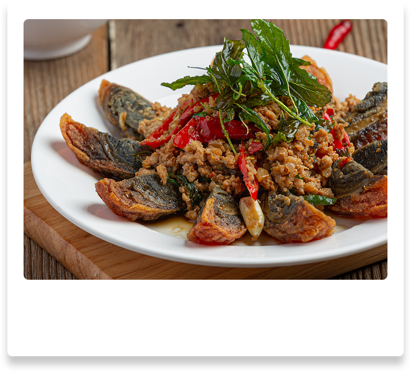 3.爆香蒜末、辣椒、蔥花,加入煎好的皮蛋及胡椒鹽炒勻即可。